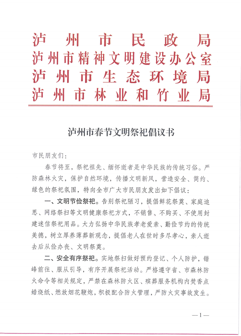 瀘州市春節(jié)文明祭祀倡議書