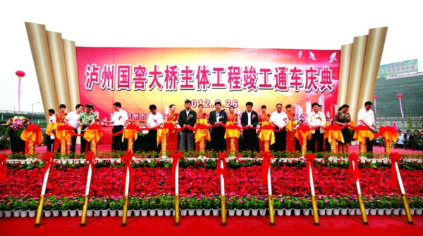 6月26日,興瀘集團(tuán)作為項(xiàng)目業(yè)主投資建設(shè)的國窖長江大橋經(jīng)過3年多的艱苦努力,終于迎來了全市人民期盼已久的國窖長江大橋竣工通車典禮。上午9時,在歡慶的鑼鼓聲中,由市住房和城鄉(xiāng)建設(shè)局、興瀘集團(tuán)主辦的國窖長江大橋主體工程竣工通車慶典在大橋東岸橋面舉行。市委書記劉國強(qiáng),市委副書記、市長劉強(qiáng)等市領(lǐng)導(dǎo)為大橋通車揭幕、剪彩,省住建廳、國家開發(fā)銀行四川省分行領(lǐng)導(dǎo)、興瀘集團(tuán)董事長、總經(jīng)理黃毅等有關(guān)單位以及市級有關(guān)部門、單位負(fù)責(zé)人和施工單位代表等出席通車慶典。