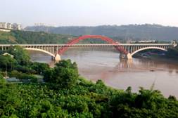 7月17日,由集團公司作為項目投資業(yè)主的瀘州龍西大橋(沱江三橋)工程通過了竣工驗收。龍西大橋總投資6600多萬元,是我市北二環(huán)市政道路的跨江大橋工程,主橋長410.5米,橋面總寬34米,其中,車行道寬24米,人行道寬5米,雙向6車道,引橋長230米,跨越沱江連接江陽區(qū)和龍馬潭區(qū)。大橋的全線完工,對緩解我市城市交通緊張狀況,擴大我市城市面積和城市容量,改善我市投資環(huán)境具有積極的作用。目前,龍西大橋與城北新區(qū)龍馬大道相連接的道路已經(jīng)建成;與城西全長5.5公里的江陽西路西延線相連接的道路建設正在進行中,江陽西路西延線已經(jīng)完成寬40米、長1.2公里干道路面混凝土、景觀工程的建設,剩余的4.3公里道路,預計在2008年底完工,屆時,龍西大橋即可通車。